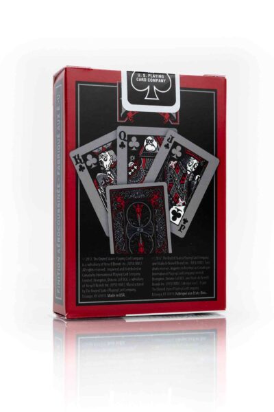 A deck of Bicycle playing cards with Tragic Faces design on Royalty Face Cards. Cards glow under blacklight. USPCC.