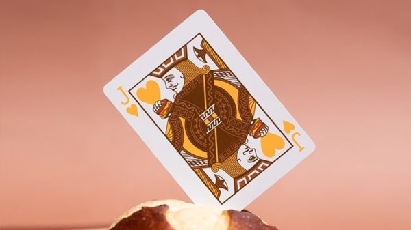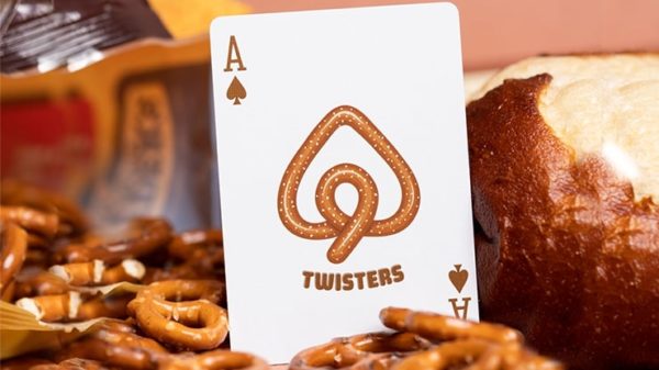 It is time to introduce you to Twisters! The newest line in the OPC brand! This is a deck I have wanted to make for so long and it’s finally here! This deck sports metallic brown ink with some salt and a yellow border! I love that we were able to take a classy back color like brown and still make it fun and flashy! As always we have our slightly customized courts and our clear packaging!