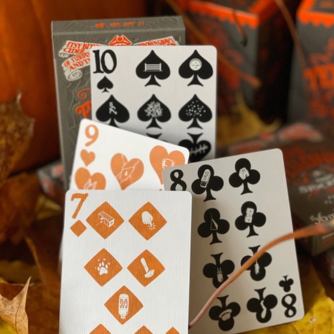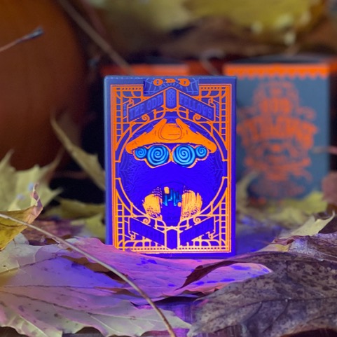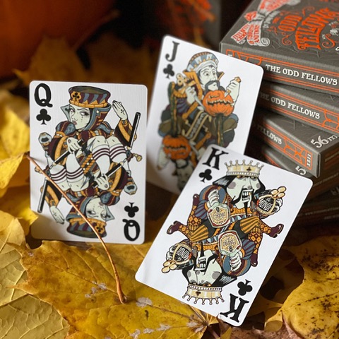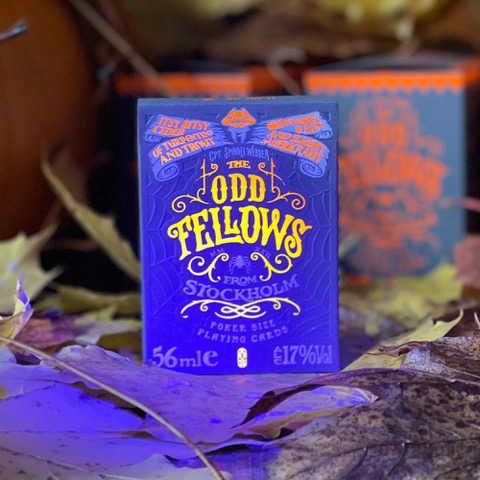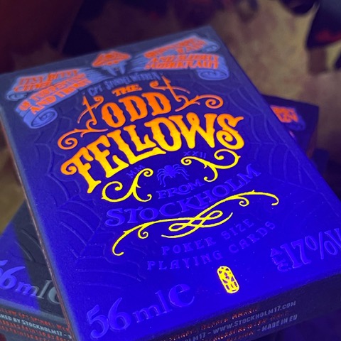 This Odd Fellow features new court cards, new tuckbox, and 219 new tiny illustrations printed with invisible UV sensitive ink, reacting to UV light (works with 365nm wavelength UV light).