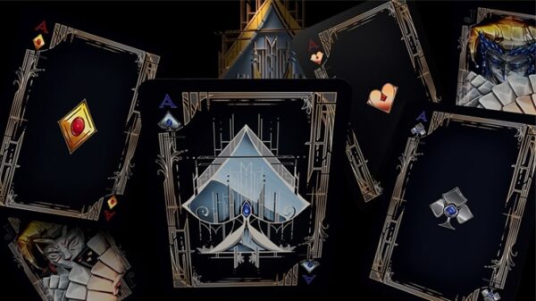 «De’vo’s Signature Series Card Masters» Precious Metals is the embodiment of unique and beautiful in playing card design! This amazing new deck has custom everything- custom pips, court cards and jokers all done in 4 different precious metal coloring patterns – Platinum, Tungsten, Yellow Gold and Rose Gold. The AMAZING artwork by Anika Burrell is breathtaking! Each suit has its own unique mask and coloring broken up into the 4 different precious metals.