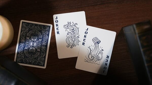 The blue & white back design features the Sorcerer’s spell book, the enchanted brooms, and of course the waves of unending water. The design also contains an openly-readable marking system that allows you to secretly learn the suit & value of a card, just by looking at its back!