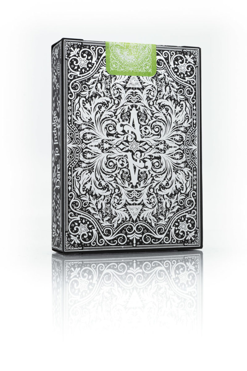 Absinthe – spritens gröna älva har länge varit förknippat med den bohemiska livsstilen, med kända drinkare inklusive Picasso, Van Gogh, Hemingway, Oscar Wilde och Toulouse-Lautrec. Ursprungligen tryckt för Prohibition Box Set, har Absinthe-kortleken justerats något för att behålla integriteten i designen. Denna kortlek är för cool för att kunna beskrivas, den måste ses. Designad av Ellusionist. Se film nedan.