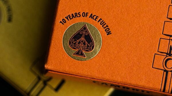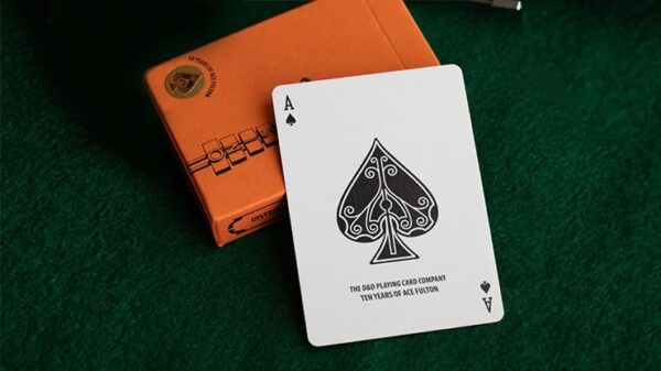 Ace satsar på tioårsjubiléet för de originella kasinokorten från den moderna eran. Den här baksidan är ett autentiskt återtryck av 2012 års klassiker men den här gången med inverterade färger – Tobacco Brown och Sunset Orange, snarare än Tobacco and Cream. Var och en av dessa autentiska reprints är inrymda i en speciell brevpressad ask komplett med guldemblemet som är präglat på framsidan med texten ”TEN YEARS OF ACE FULTON.” Dessa baksidor är Fultons dröm – en baksida som matchar den legendariska asken. Tryckt på crushed stock ”Buck Twin” av USPCC, producerad av den legendariska duon, Dan & Dave. Denna specialutgåva är förseglad med originalet ”D&D Playing Card Company”-sigill. Se bilder nedan.