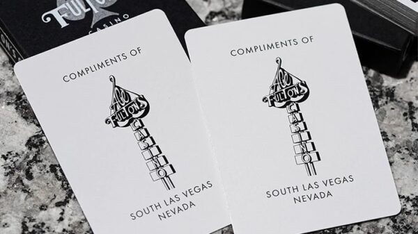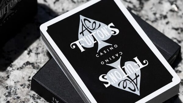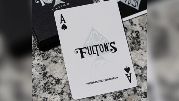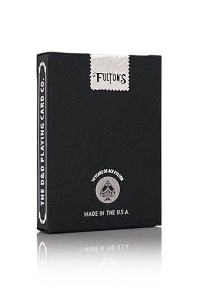 Ace satsar på tioårsdagen för de originella kasinokorten från den moderna eran. Den här innehåller den sällsynta CRUSHED IVORY(släta) kartongen, som måste upplevas. Vintage back Ace Fulton är en av de ursprungliga designerna för den nu legendariska Ace Fulton’s, den här gången tryckt på den ursprungliga MIDNIGHT FUEL Bordered Back med metalliskt silver och vitt som framhäver vintage logotypen på baksidan. Var och en av dessa VINTAGE FUEL BACK Ace Fultons är inrymda i en speciell bokstavspressad ask, komplett med silveremblemet som är präglat på baksidan med texten ”TEN YEARS OF ACE FULTON.” Tryckt på CRUSHED IVORY 37 lager av USPCC, producerat av den legendariska duon, Dan & Dave. Dessa är förseglade med en LIMITED EDITION METALLIC SILVER ACE FULTON’S SEAL präglad och bokstavspressad i San Diego, CA. Se bilder nedan.