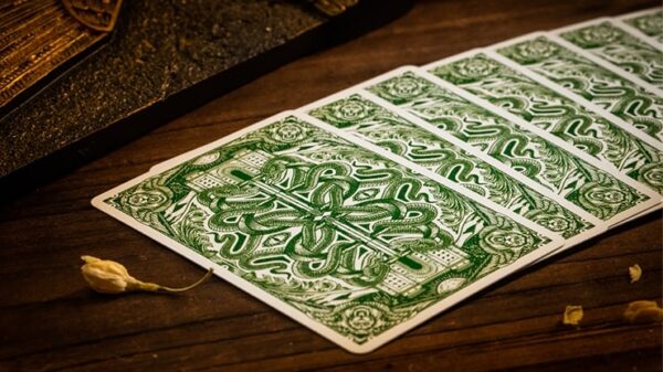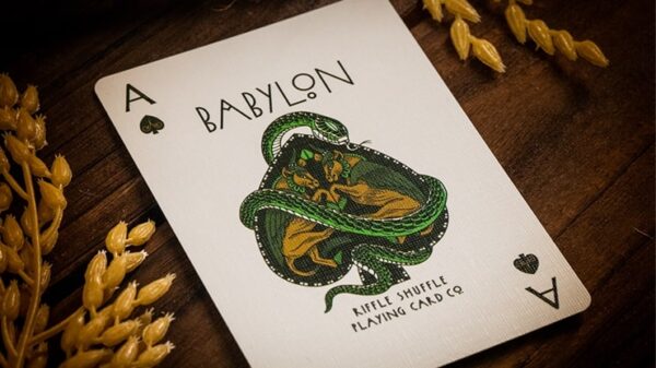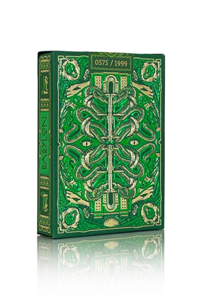”Babylon, i alla dess yttringar, är på ett sätt avlägset för oss och ändå så nära. Som ingen annan stad har dess historia blivit förbunden med legender…” Vi är här med en kortlek som kommer att ta dig tillbaka in i det forntida Babylons underverk, mysterier och legender. I samarbete med Studio Muti är vi stolta över att presentera en kortlek inspirerad av ett av den antika världens sju underverk – The Babylon Playing Cards. Kommer i tre vackra utgåvor: Ruby Red, Cerulean Blue och Forest Green. Premium röd/blå/grön matt yta på skimrande papper med prägling. Med guld och röda premiumfolier på Ruby Red-asken. Med silver & blå premiumfolier på Cerulean Blue-asken. Med Gold & Green premiumfolier på Forest Green-asken. Folierad inre ask med vacker illustration av Babylons underverk. Ruby Red & Cerulean Blue begränsat till 2500 kortlekar vardera med folierat nummersigill. Forest Green begränsad till 1999 kortlekar. Var och en med folierat nummersigill. Tryckt av TWPCC med sin lyxiga finish. Se film och bilder nedan.