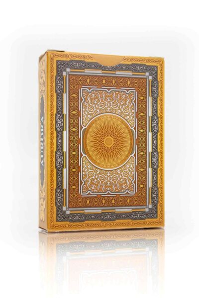 Här pratar vi guld och silver. Guld representerar soluppgång och silver representerar skymning. De mycket snygga baksidorna har en vacker bild av solen. En helt grym kortlek för kortsamlaren. Konstverk och anpassade pips illustrerade av Johnny Whaam. Tryckt på premium Bicycle. Se bilder nedan.