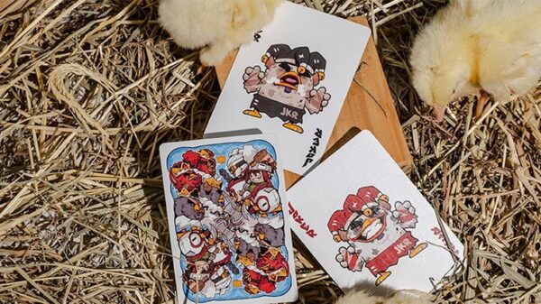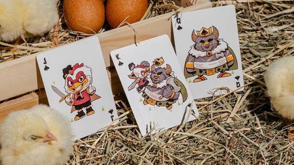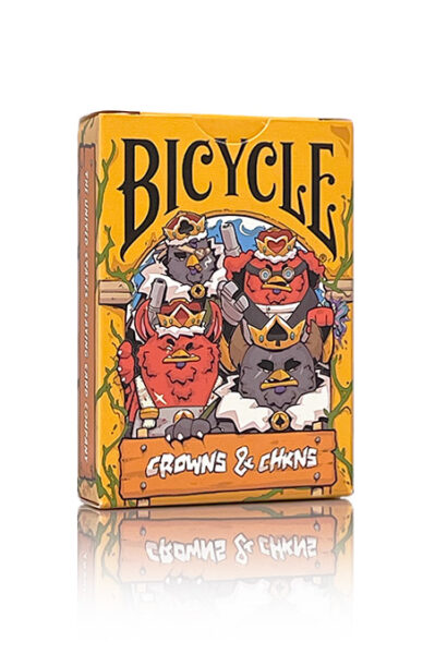 Vad kom först? Hönan eller ägget? För att vara värdig kronan måste en kortlek uppfylla den högsta standarden i landet. Bicycle Chkns & Crowns trycks stolt av United States Playing Card Company, ett namn som både spelare och samlare litar på. Varje kort har den karaktäristiska Air Cushion Finish. Med stöd av det världsberömda varumärket Bicycle, ett namn som har regerat sedan 1885, är denna kortlek byggd för både hönshuset och spelplanen. Snabba fakta: 100% specialdesignat konstverk av Creon Chkn. 56 unikt illustrerade kort. Världsberömt Bicycle®-märke. Dubbelfront Bicycle®-ask. Klassisk Bicycle®-förpackning. Fotografi och styling av Kandou. En fjäderdriven äventyrslek producerad av RunIt Decks®