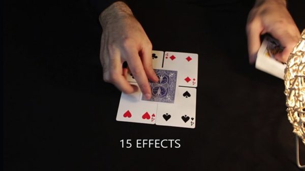 4 i 1: Du låter din publik fritt välja fyra kort och avslöjar sedan att de är exakt de fyra 4:orna i leken (spader, hjärter, klöver och ruter). Du tar sedan ett speciellt kort som har en annan baksida och ett med tom framsida och lägger det ovanpå de fyra korten. Efter några sekunder skrivs kortet ut och de fyra indexen på 4:orna visas.