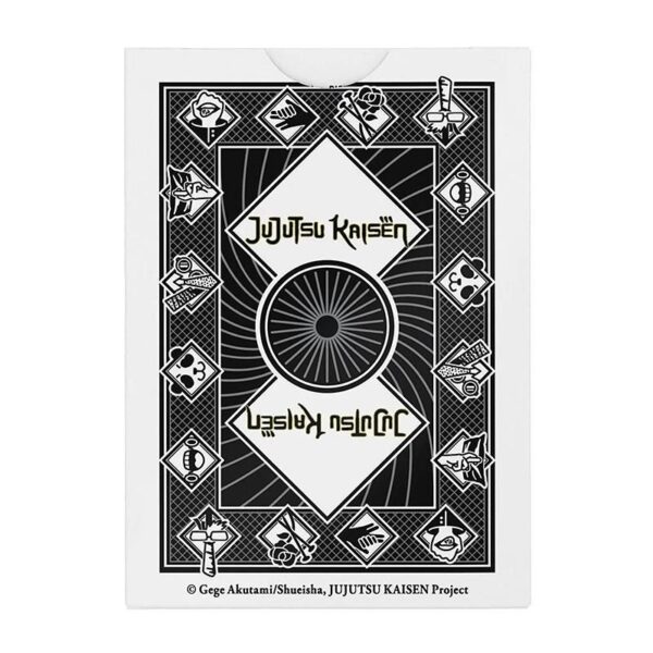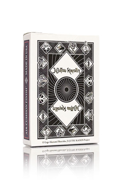 Attackera varje omgång kortspel som en Jujutsu-utövare! Med en specialdesignad baksida med Tokyo Jujutsu High School-logotypen och en favoritkaraktär på de klädda korten, är du redo att bjuda upp till fight. Slagkraftiga klädda kort med karaktärskonstverk av Yuji, Megumi, Nobara och Gojo, samt stiliserade index som påminner om Sukunas tatueringar. USPCC.