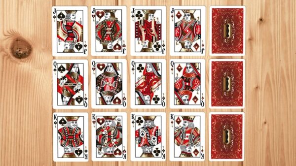 Välkommen till den allra första kortleken av Magic Almendros och Almenvi Playing Cards i samarbete med Max Playing Cards. En ny design klädd i djuprött med en touch av guld. Välkommen till Bicycle Luxury Keys. Legenden säger att härskarna i fyra stora kungariken samlade in sina skatter och förvarade dem i en låst kista. För att undvika plundring kastade en trollkarl en ”spell” på låset och endast tre personer från varje rike, kungen (K), drottningen (Q) och riddaren (J), kunde öppna kistan med magiska nycklar skapade av bästa guldsmeder. Inspirerad av legenden om den magiska kistan, tolkar Luxury Keys med en elegant och lyxig aspekt full av exklusiva detaljer. Essen visar nycklarna till de fyra kungadömena, smidda i oförstörbart stål, men dekorerade av de mest känsliga händerna för att skapa smycken med en gyllene och glänsande finish. Baksidan visar oss det hemsökta nyckelhålet i en mycket utsmyckad och subtilt asymmetrisk design, ett annat kraftfullt verktyg för magi. Asken är en blandning av elegans och lyx med en mystisk atmosfär i en färgkombination där rött och guld sticker ut. Se bilder nedan.