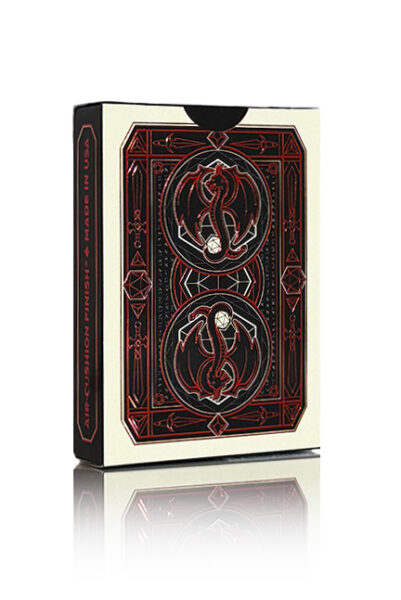 Bicycle Spellbound! Den specialdesignade baksidan av korten framhäver svärd, dolkar, drakar och polyedriska tärningar. Skimrande, karmosinröda foliedetaljer på instickningen gör denna kortlek till ett legendariskt föremål. Använd magiska, ljusa och onda ”joker”-korten i kortspelet Bicycle Spellbound!(Instruktioner på engelska ingår). USPCC.
