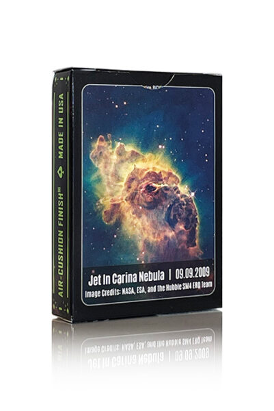 Ge dig ut på ett kosmiskt äventyr med Bicycle Stargazer 203! Blicka in i den vördnadsbjudande jetstrålen i Carinanebulosan på varje korts baksida med fotografier tagna med Hubbleteleskopet den 13 april 2022. Med de konstellationsinspirerade designerna på de klädda korten och en grön folie-infälld inbäddning kommer du att bjuda på ett universum av underhållning.