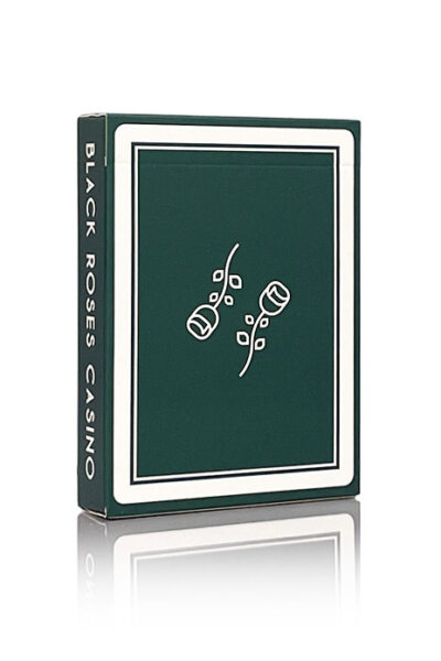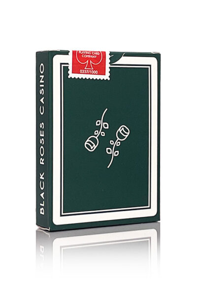 Black Roses Casino V4 i en slående gröna nyans. Med dolda ”Reveals” på de klädda korten och subtila men ändå geniala designdetaljer är denna kortlek perfekt för improviserade illusioner. Tryckt på det finaste kasinopappret erbjuder den både överlägsen hantering och elegant estetik. Helt customgjord fram- och baksidedesign. Subtil enkelriktad märkning på framsidorna. Blank face gaffkort. Traditional Cut. Begränsad upplaga – endast 1 000 kortlekar med ett numrerat sigill.