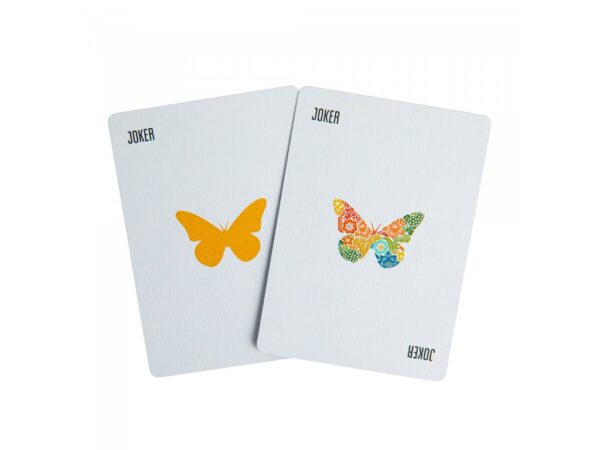 Butterfly Playing Cards producerades av Ondrej Psenicka, designades i Sverige av Stefan Eriksson, färglagd i Tjeckien av Tereza Kovandová, och tryckt av Cartamundi på Slimline lager med B9 linnefinish. 4000 kortlekar är tryckta. Slimline lager med en B9 äkta linnefinish. Precision Cut. Envägsdesign på baksidan. Tryckt av Cartamundi. Märkt (3:e utgåvans märkningssystem) Inga instruktioner för märkningssystem ingår. Se bilder nedan.