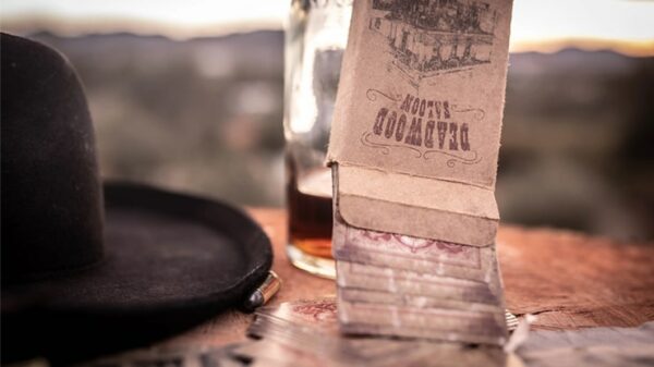 Spelsalongerna i Deadwood, South Dakota, är synonyma med vilda västern och de ökända cowboys som besökte dem. Inte längre så att Wild Bill Kickok som sköts i ryggen av Jack McCall när han spelade poker medan han fortfarande höll den nu legendariska ”Dead Mans Hand” med 2 svarta 8:or och 2 svarta ess. Den här unika kortleken är designad för att få tillbaka nostalgin från vilda västern och föra dig tillbaka till en tid som cowboy och hustler. Deadwood-kortleken har en autentisk vaxartad känsla och finish, plus en kartong för hantverkspapper för en extra nivå av realism. Varje kort har designats individuellt för att åldras olika så att inte två kort i kortleken är exakt likadana och upprepade mönster som ofta finns i andra åldrade kortlekar förekommer inte med Deadwood-leken. Tillgängliga i både rött och blått. Korten har lättlästa markeringar på dem som möjliggör intressanta spel och magiska presentationer och levereras även komplett med en joker plus 4 extra ”blodfärgade” kort från ”Dead Mans Hand”. En speciell bonus röd/blå doublebacker kompletterar denna kortlek.