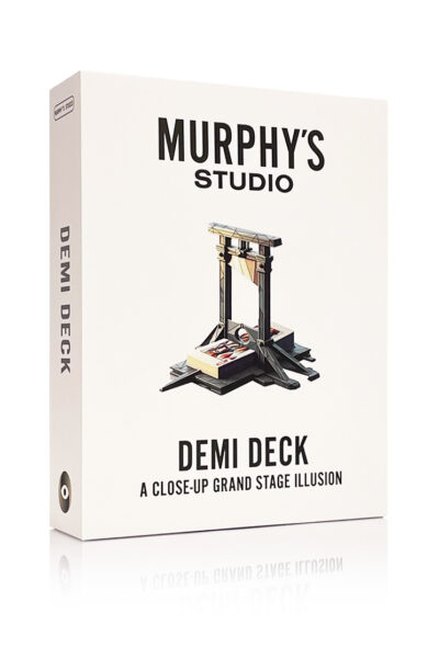 Scenillusioner skiljer sig från alla andra typer av magi… De är större än livet och visar vår vilja att åstadkomma det omöjliga. Men för att upprätthålla den illusionen måste publiken se den på avsevärt avstånd. Angelo Carbones briljanta sinne bringar de största scenillusionerna – att skära en person på mitten – till dina händer, med Demi Deck. Föreställ dig att du tar en vanlig kortlek, lägger den i fodralet och med en snitt av bladet skär du kortleken på mitten och visar båda ändar. Sedan med några magiska ord, blir kortleken hel igen. Använd vilken kortlek som helst. Innehåller flera rutiner. Lätt att lära. Efter 17 år av perfektion av designen är den prisbelönte magikern Angelo Carbone äntligen redo att öppna gardinerna och avslöja sitt senaste mästerverk, välkommen till Demi Deck.