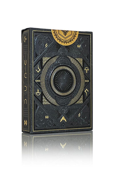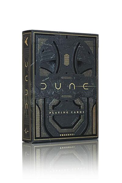 Premiumspelkort av Theory11 som ger liv till alla dina favoritkaraktärer från Dune. Sätt din fot på den hårda ökenplaneten Arrakis. Följ Paul Atreides resa och delta i hans uppdrag att i slutändan rädda mänskligheten. Oöverträffad utskriftskvalitet. Asken är helt häpnadsväckande. Komplett med fantastiska folieaccenter och prägling som ger boxen en härdad, taktil känsla. Själva korten är gjorda i USA – tryckta på FSC-certifierat papper som härrör från hållbara skogar, vegetabiliskt bläck och stärkelsebaserat laminat. Se bilder nedan.
