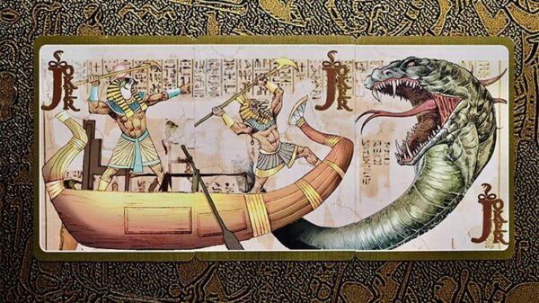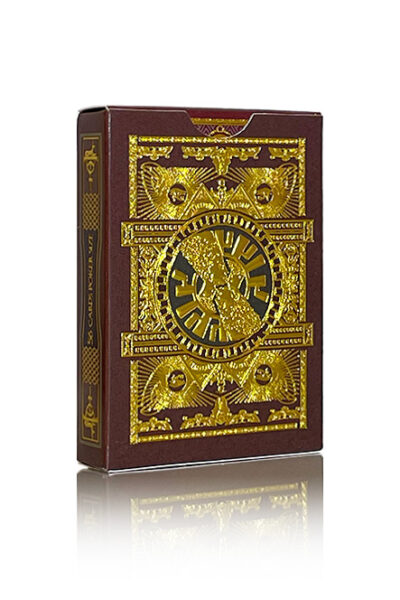 Upptäck magin i det forntida Egypten med denna extraordinära kortlek designad av F.C. Designad och tryckt av King Star. Låt dig fascineras av dess fantastiska illustrationer av de viktigaste egyptiska gudarna, med fantastisk prägling och lyxig golffoliefinish. Rá, Horus, Seth, Isis, Osiris, Bastet, Sekhmet, Toth och många andra egyptiska gudar avbildas på traditionellt sätt, så som de forntida egyptierna föreställde sig dem. Denna kortlek visar en total trohet och respekt för gudarna och traditionerna i det forntida Egypten som ingen annan kortlek med detta tema någonsin har visat. Alla kort i premiumleken kommer att ha en vacker guldfolieram som ger dem en touch som få kortlekar för närvarande erbjuder på marknaden. Denna ram kommer att finnas på alla kort i leken, inte bara på hovkorten, utan även på nummerkorten, ess och jokrar. Tillverkad av King Star. Deras extremt högkvalitativa material och solida finish är välkända bland de stora experterna på lyx- och fantasykort.