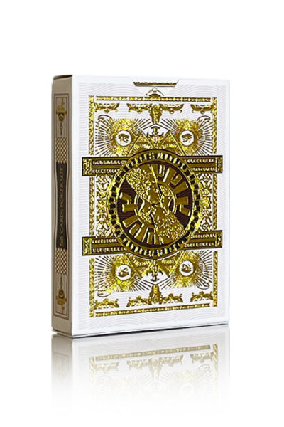Upptäck magin i det forntida Egypten med denna extraordinära kortlek designad av F.C. Designad och tryckt av King Star. Låt dig fascineras av dess fantastiska illustrationer av de viktigaste egyptiska gudarna, med fantastisk prägling och lyxig golffoliefinish. Rá, Horus, Seth, Isis, Osiris, Bastet, Sekhmet, Toth och många andra egyptiska gudar avbildas på traditionellt sätt, så som de forntida egyptierna föreställde sig dem. Denna kortlek visar en total trohet och respekt för gudarna och traditionerna i det forntida Egypten som ingen annan kortlek med detta tema någonsin har visat. Alla kort i premiumleken kommer att ha en vacker guldfolieram som ger dem en touch som få kortlekar för närvarande erbjuder på marknaden. Denna ram kommer att finnas på alla kort i leken, inte bara på hovkorten, utan även på nummerkorten, ess och jokrar. Tillverkad av King Star. Deras extremt högkvalitativa material och solida finish är välkända bland de stora experterna på lyx- och fantasykort.