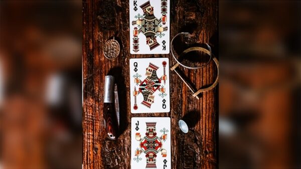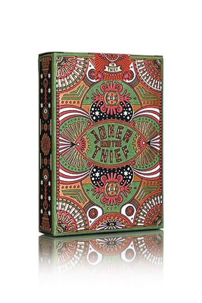 Ge dig in i en värld av Maya-myter och mysterier. Gudar styr långt bortifrån – eller gör de det? Akta dig för de falska idolerna. I historiens skuggade hörn, där myter flätas samman med verkligheten, har Joker & the Thiefs gåtfulla gestalter dansat genom tiderna. De är eviga, allestädes närvarande, men ändå inte omedelbart igenkända. De har presenterat sig som de stora ”Seafarers”, på land som ”Wayfarers” och i ”Dystopia”. De har till och med överskridit verkligheten inom vår serie Psychonauts. I serien, False Idols, spelar dessa två mystiska varelser sina mest vågade roller hittills – maskerade som de gamla civilisationernas gamla gudar. False Idols är en 100% customgjord kortlek, från baksidans design, alla ess, de klädda korten och jokrararna. Förpackad i en spektakulär ask, komplett med foliestämpling och prägling. Den skapar en underbar, upphöjd textur som du kan känna. Det finns två huvudupplagor. Standardleken som har trädet och Totem Edition som har den svarta asken och folieaccenter på baksidan av korten.