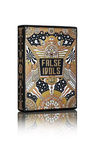 Ge dig in i en värld av Maya-myter och mysterier. Gudar styr långt bortifrån – eller gör de det? Akta dig för de falska idolerna. I historiens skuggade hörn, där myter flätas samman med verkligheten, har Joker & the Thiefs gåtfulla gestalter dansat genom tiderna. De är eviga, allestädes närvarande, men ändå inte omedelbart igenkända. De har presenterat sig som de stora ”Seafarers”, på land som ”Wayfarers” och i ”Dystopia”. De har till och med överskridit verkligheten inom vår serie Psychonauts. I serien, False Idols, spelar dessa två mystiska varelser sina mest vågade roller hittills – maskerade som de gamla civilisationernas gamla gudar. False Idols är en 100% customgjord kortlek, från baksidans design, alla ess, de klädda korten och jokrararna. Förpackad i en spektakulär ask, komplett med foliestämpling och prägling. Den skapar en underbar, upphöjd textur som du kan känna. Det finns två huvudupplagor. Standardleken som har trädet och Totem Edition som har den svarta asken och folieaccenter på baksidan av korten.