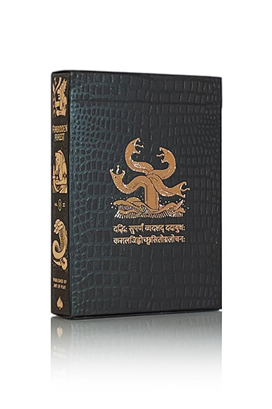 En kortlek baserad på den sydasiatiska mytologins nyfikna varelser. Forbidden Forest fångar Sydasiens mest fantasifulla mytologiska varelser i en excentrisk uppsättning lyxiga spelkort. Från en hästhövdad demon till rivaliserande apor. Toronto-baserade designstudion Humble Raja har omtolkat tolv fantastiska djur för att blåsa nytt liv i uråldriga berättelser. Vackert tryckt av United States Playing Card Company med ett guldfolieöverdrag på baksidan av varje kort med en design inspirerad av antika marmoreringar. Förpackad i en lyxig ask präglad med ett reptilskinnsmönster. Se film och bilder nedan.