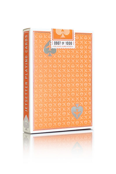 Efter sina föregångare har Jetsetter Playing Cards producerat Lounge Edition som ännu en vintage och elegant kortlek med modern dragningskraft. Den rena och enkla designen, som fortsätter att inspireras av tidigare kasino- och flygbolagskortlekar, passar med resten av Jetsetters spelkortsflotta. Med Limited Back-versionen av Lounge Edition i Hangar Orange, ger kortleken en uppgraderad känsla jämfört med Standard Back-versionen. Korten visar omfärgade standardframsidor och har en otraditionell offsetklassisk och kasinoinspirerad baksidedesign som hyllar ett vintage regionalt flygbolag med den orangefärgade färgen. På Limited Back-versionen är baksidedesignen uppgraderad med både silverfolie och klar UV-punktlack. Korten är traditionellt skura för att ge möjligheten att göra faro-shuffles med framsidan nedåt. Asken uppvisar premiumfunktioner med ett hållbart syntetiskt lagermaterial, klar UV-lack och mer silverfolie än Standard Back-versionen. Denna kortlek är begränsad till en produktionsserie på 1 000 kortlekar och har en individuellt numrerad perforerad tätning.
