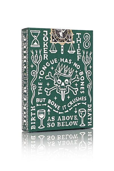 Vi presenterar Joker and the Thief: Crown Edition spelkort! Denna nya serie av lyxiga spelkort där det praktiska och estetiska möts i perfekt harmoni. Handillustrerad av vår långvariga medarbetare, världsberömda konstnär och vän Pedro Oyarbide. Crown Playing Cards utforskar ett förhållande till livet och en stoisk inställning till döden, och utvidgar de teman som etablerats i de ursprungliga Joker and the Thief-lekarna. Välj bland våra klassiska Standard Red, Standard Green, Standard Gold och Standard Blue. Dessa spelkort betonar det praktiska – med minimalistiska klädda kort. Tillverkad med premiumpapper och en finish som låter korten glida utan ansträngning. Allt inrymt i en vacker ask med kraftig prägling på designelementen. Förseglad med vår folie, Joker and the Thief-tillverkarens sigill.