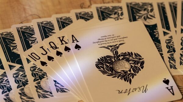 Just nu exklusivt endast hos Kortleksbolaget! En hyllning till den moderna fysikens fader, Isaac Newton. Baksidesdesignen utgår från några av Newtons största upptäckter och för insidan av asken har Newtons faktiska anteckningar använts. Newton Playing Cards är ett samarbete mellan Harapan Ong från Singapore och Stefan Eriksson, designern bakom Butterfly Playing Cards. – USPCC Premium Crushed Stock – Standard-framsidor – 4st specialkort medföljer
