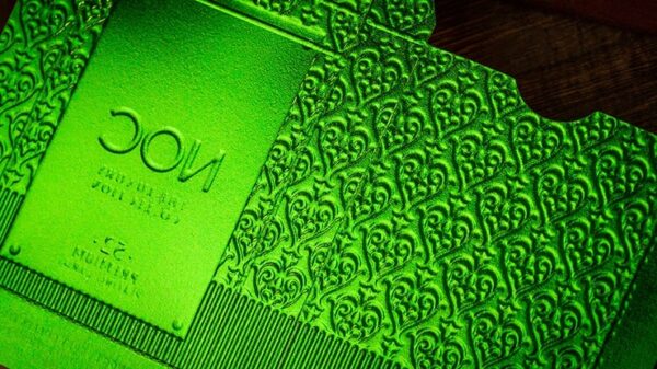 NOC V2 Luxury Collection finns nu i tre helt nya färger – Ruby, Sapphire och Emerald. Ända sedan deras tidigare framgång på Kickstarter kommer dessa nya utgåvor säkert att fånga ditt öga och du vill att de ska vara en del av din samling. Exklusivt begränsat till 7500 av varje färg. Folierade och numrerade sigill. Tillverkade av Cartamundi, med deras avancerade COLD FOIL-utskriftsteknik på baksidan med deras premium Slimline Paper Stock & B9 True Linen Finish. Asken är lyxigt tillverkad med 4 nivåer av 3D-präglingsteknik. Fint ingjutna 2 Hot Foil-stämplar på asken med Kurz Foil importerad från Tyskland. Helt folierad innerask. Fullständigt märkt. Ett kraftfullt märkningssystem som låter dig identifiera färgen och värdet på ett givet kort. Customgjord handapplicerad folieförsegling omsluter framifrån och bak med en perforerad kant för enkel öppning. Se bilder nedan.