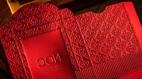 NOC V2 Luxury Collection finns nu i tre helt nya färger – Ruby, Sapphire och Emerald. Ända sedan deras tidigare framgång på Kickstarter kommer dessa nya utgåvor säkert att fånga ditt öga och du vill att de ska vara en del av din samling. Exklusivt begränsat till 7500 av varje färg. Folierade och numrerade sigill. Tillverkade av Cartamundi, med deras avancerade COLD FOIL-utskriftsteknik på baksidan med deras premium Slimline Paper Stock & B9 True Linen Finish. Asken är lyxigt tillverkad med 4 nivåer av 3D-präglingsteknik. Fint ingjutna 2 Hot Foil-stämplar på asken med Kurz Foil importerad från Tyskland. Helt folierad innerask. Fullständigt märkt. Ett kraftfullt märkningssystem som låter dig identifiera färgen och värdet på ett givet kort. Customgjord handapplicerad folieförsegling omsluter framifrån och bak med en perforerad kant för enkel öppning. Se bilder nedan.