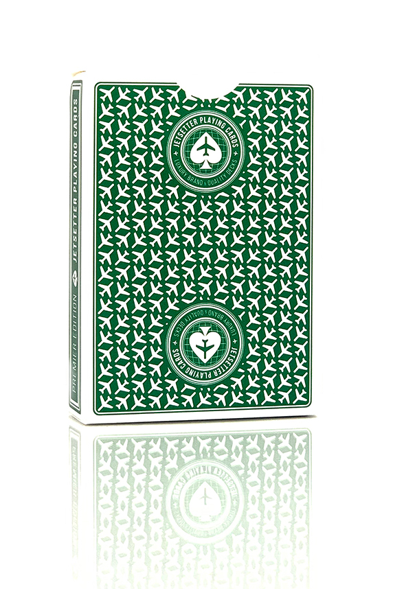 Inspirerad av tidigare kasinon och flygbolag, har Jetsetter producerat Premier Edition som en vintage och stilren kortlek med modern touch. Den rena och enkla designen är uppskattad av flyg-, rese- och kortleksentusiaster från hela världen. Precis som alla andra Standard Edition-kortlekar i serien så tillverkas boxen med exklusivt syntetiskt papper som ger en väldigt bra hållbarhet. Kortleken har UV-beläggning som är kreativt applicerad som ett mönster med flygplan som finns på framsidan av boxen. Dessutom kommer alla spadersymboler på boxen att skina med silverfolie. När du drar korten ur lådan, hittar du ett par boardingpass-jokrar. Spelkorten visar upp färgade standardytor tillsammans med en klassisk och casinoinspirerad baksidedesign. Traditional cut. Se bilder nedan.