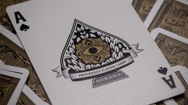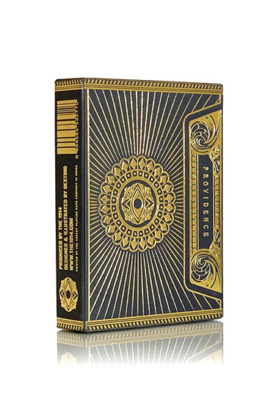 1914 är stolta över att presentera sina flaggskeppslyxiga Providence. Tryckt av Expert Playing Card Company på deras världsberömda premiumkartong. Providence är av klass och stil med sitt pirrande metalliska bläck och guldfolie på varje kort. Designad av Destino och inspirerad av universums hemligheter, Providence representerar mysterium; Förkroppsligandet av både kaos och ordning; Oändliga sekvenser av 52 gamla symboler som glider poetiskt mellan händerna och glittrar i ljuset. Inrymt i en präglad sido-tuck-box, är Providence-kort traditionellt skurna för smidiga hanteringar och perfekta faro-blandningar. Upplys ditt sinne och stimulera sinnena med en helt ny premium- och taktil upplevelse. Se bilder nedan.