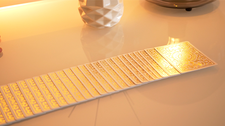 Regalia White Playing Cards av Shin Lim. Regalia är synonymt med elegans, prestige och innovation. Varje kort är tillverkat av det finaste pappret av Cartamundi och ferfekta för faroshuffles. Kortasken är lyxig och täckt med guldfoliestruktur i perfekt harmoni med de prestigefyllda korten. Mycket fin kortlek. Se bilder och film nedan.