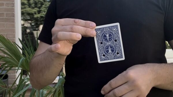 Den klassiska ”Traveling hole”, fast på steroider… Effekt: Ett kort väljs ut och kan signeras. Därefter görs ett hål i varje hörn av kortet. Magiskt och visuellt glider nu 2 hål -genom mitten- hela vägen till den andra änden, så alla 4 hålen sitter nu i rad – med bara en lätt skakning går hålen visuellt -genom mitten – tillbaka till sina hörn igen! MASSOR av olika sekvensmöjligheter med denna fantastiska gimmick. Inga ord kommer att göra denna effekt rättvisa – ”Reverse Matrix” ser ut som trickfotografering och är ändå MYCKET lätt att göra. Du kommer att lura dig själv. Levereras komplett med färdig ”Reverse Matrix” gimmick och videoinstruktioner online. Använd din egen hålslagare. Se film och bilder nedan.
