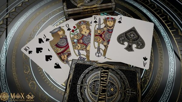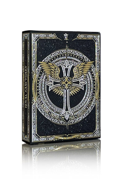 Legenden berättar om Royal Sanctuary, en helig tillflyktsort skapad av gudarna som en hyllning till adeln och äran av kloka och rättvisa härskare. Dold och skyddad genom förfäders magi var det en plats för gudomliga råd, där endast kungarna, drottningarna och krigarna kunde söka himmelsk visdom och välsignelser för att vägleda sitt folk. Royal Sanctuary-spelkorten hedrar detta legendariska arv, som förkroppsligar storheten och mystiken i denna mytiska plats. Varje design återspeglar helgedomens högtidlighet och gudomliga närvaro, och påminner oss om de eviga värdena, adel, visdom och makt. Noble Editions of the Royal Sanctuary representerar höjdpunkten av lyx och elegans. Dessa exklusiva askar är gjorda utan något tryck; istället har de utarbetade folier i tre olika färger på lyxigt svart lager. Denna teknik förstärker inte bara den estetiska delen, utan betonar också kortlekens gudomliga väsen och ädelhet. Royal Sanctuary Noble Edition: Designad av Shapeshifters. Producerad av Max Playing Cards. 3 olika metalliska folier(inget tryck). asken har svart soft-touch lager. Högkvalitativ tysk linnekartong. Gyllene metallic bläck på fram- och baksidan av kort. Tryckt av Noir Arts(NPCC) med premium linnefinish.