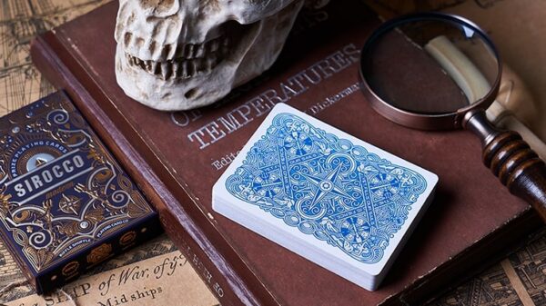 Sirocco, med klassiskt tema och medelhavsestetik som återges i modern monolinjestil, vilket gör det ännu mer tidlöst och oförglömligt. Sirocco Modern Edition med sina skarpa linjer, minutiös komposition och skyddande sjöjungfrur är inte bara ett konstverk, utan ett tecken på en livsstil och upplevelse. Ett konstverk med guld- och silverparad foliering, invecklad prägling och dubbelsidig utskrift, allt noggrant planerat och stämplat på ett matt royal blue ”beauty skin” -papper, är det en eftergivenhet som Riffle Shuffle arbetar hårt för att göra överkomligt för alla. Limited Edition, 2500. Tillverkad av Cartamundi med äkta B9 linnefinish. Nytt slimmat papperslager. Helt customgjord. Se bilder nedan.