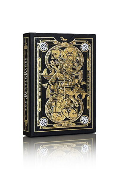 Beetle Backs Prestige Edition, som är begränsad till 5000 exemplar, har ett vackert präglat kortfodral med 3 lager folie tryckt på 310 g/m² kartong av högsta kvalitet. Korten inuti har en klassisk spegelblank baksida prydd med vacker guldfärgad kallfolie och metalliskt bläck, som kontrasterar mot en djupsvart bakgrund. Kortens framsida är också tryckt med guldfärgad kallfolie. Ett sant samlarobjekt som kommer att förvåna vid kortbordet eller på hyllan. En specialnumrerad sigill pryder botten av asken. Beetle Backs, presenterad av The Gentleman Wake och designad av Widakk Design, är kulmen på ett tvåårigt arbete med att skapa en kortlek som är perfekt för samlare, spelare och magientusiaster överallt. Klassisk och vacker, med stil och elegans från sekelskiftet och de finaste moderna hanterings- och tryckteknikerna för spelkort, berättar Beetle Backs också den kafkaiska historien om en hårt kämpande entomolog djupt försjunken i studier av sitt valda område; underfamiljen Dynastinae av skarabébaggar. För spelare, samlare och magientusiaster är Beetle Backs en mästerlig kollektion av kortlekar; en perfekt förening av klassiskt inspirerad illustration och modern design, mästerligt tillverkad med material av absolut högsta kvalitet och noggrannhet i detaljerna. Kortleken är förpackad i premiumförpackning prydd med upp till tre folielager och djup prägling.