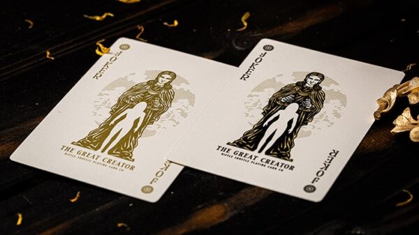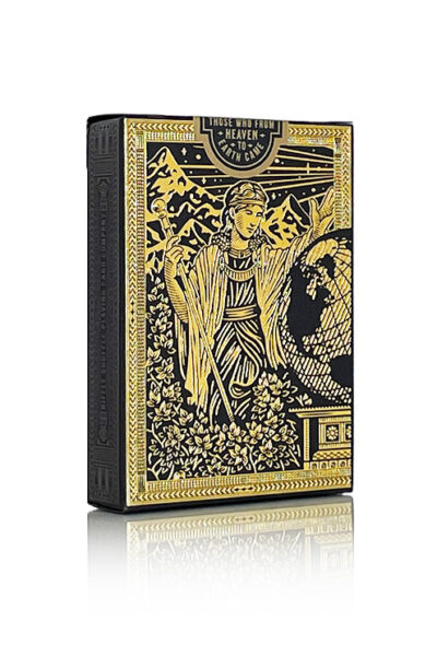 Har du någonsin undrat hur livet var för de som kom levde oss? Skapandeprocessen är långsam och tar ofta tusentals och åter tusentals år. De gamla sumererna trodde att det var urhavet som skapade himmel och jord, sedan kom månen och solen. Dessa kort förkroppsligar det som representerar vårt universum – himmel och jord. Vi inbjuder dig att bevittna processen för den största skapelsen av vår Gud och Gudinna – Fader AN och Moder KI. Guldfolie på baksidans design. Guld & Silver Metallic Ink på de klädda korten. Inrymd i en ren svart premium 300gsm matt finish ask – robust och elegant. Gold Edition har ett inre med guld holografisk folie. Begränsad upplaga av 1299 kortlekar var och en med folierad nummerförsegling. Korten är tryckta av Taiwan Playing Card Company med deras lyxiga papper. Asken är tillverkad i USA med importerat papper & folie från Tyskland. Se bilder nedan.