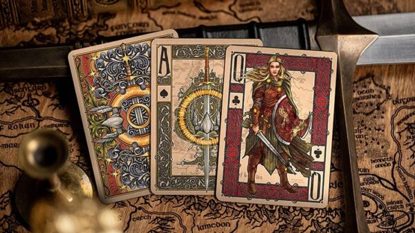 Officiellt licensierad av Middle-earth Enterprises och producerad av Kings Wild Project.  Denna avslutar en trilogi av kortlekar baserade på trilogin om Sagan om ringen-böckerna.  En fortsättning på grunderna som lagts av både Sagan om ringen™ och De två tornen™. Konungens återkomst är unikt illustrerade och designade med så mycket detaljer som möjligt för att hedra och upprätthålla Tolkiens mästerskap. Vi hoppas att fans världen över kommer att älska att se berättelsen på ett nytt sätt. Denna kortlek innehåller älskade karaktärer inklusive Aragorn och Arwen, Sam som bär Frodo, De dödas kung, Denethor, Sauron och många fler. Varje karaktär från Konungens återkomst är hämtad direkt och troget från texten och väcks till liv i ett helt nytt ljus. Liksom i tidigare projekt finns det två versioner av kortleken, en folierad och en icke-folierad version, båda tillgängliga i standard- och förgylld utgåva. Den folierade versionen av kortleken har samma mönster som den icke-folierade, men den är förstärkt med folierade element på både baksidan och framsidan av varje kort. De förgyllda utgåvorna av varje version har livfulla förgyllda kanter på korten.  DETTA ÄR GILDED ICKE-FOIL