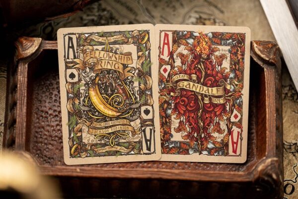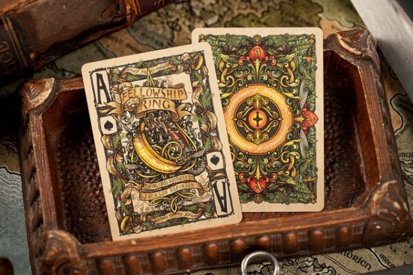 Kings Wild Project är glada över att tillkännage lanseringen av den officiellt licensierade ”Sagan om ringen”-kortleken. Licensierad genom Middle-earth Enterprises kommer vi att producera en serie vackert illustrerade kortlekar för vart och ett av de tre mästerverken. Se bilder nedan.
