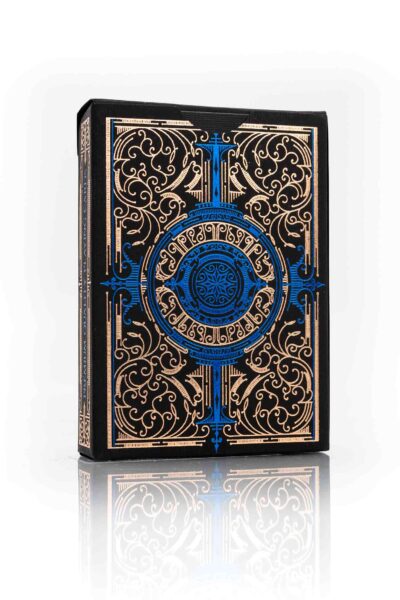 Tryckta av Legends Playing Card Co. 55 customgjorda kort. Originalillustrationer. Unik baksida. Ask med foliering i blått och guld. Se bilder nedan.