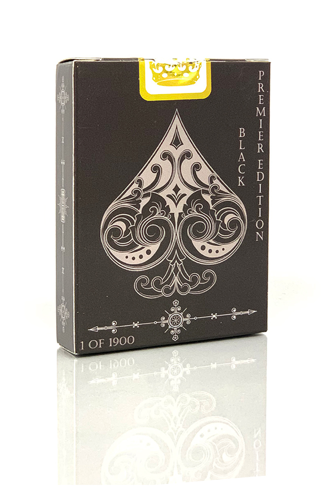 Limited Edition 1900. Denna Premier Edition Gold Gilded Black Vintage Label är den första kortleken i en samling lyxiga premiumkvalitetskortlekar utvecklade av CLCPC Studio 52 i samarbete med Royal Crown Playing Cards. Kortleken är inspirerad av vintage vinflaskmärkning från 1900-talet för att ge kortentusiaster en unik samling kortlekar av vin-tema i en rad vinfärger som har ett klassiskt utseende och känsla. Dessa kort projicerar en känsla av fin kvalitet och klass. Kortleken inkluderar 52 spelkort, 2 Jokrar, plus 1 doublebacker och 1 gaff-kort. Se bilder nedan.